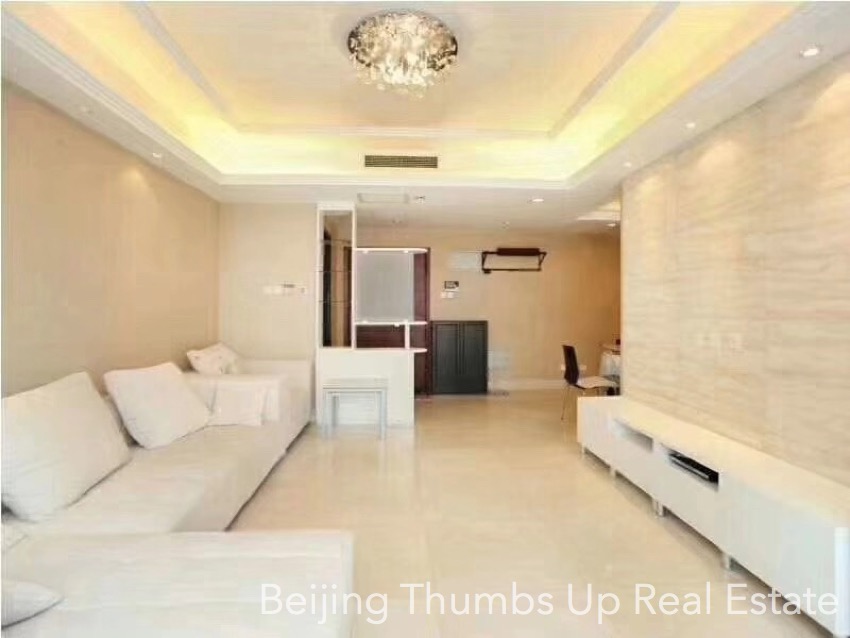 This apartment is located in Swan Bay. It has 2 bedrooms with an area of 114 square meters. It is fully furnished with all necessary furniture. Sway Bay is very close to Qingnianlu subway station of line 6 and the great business center-Chaoyang Joy City which is absolutely well-known in Beijing.