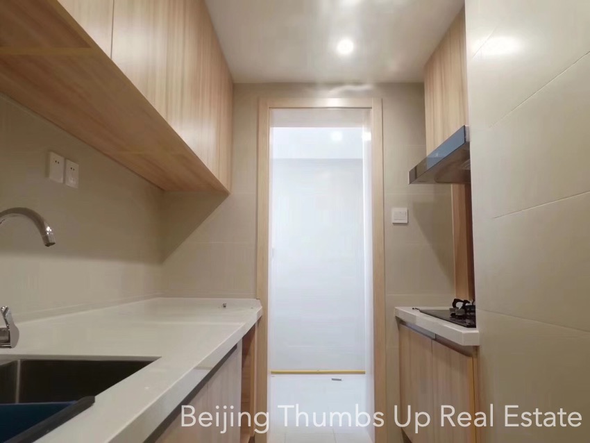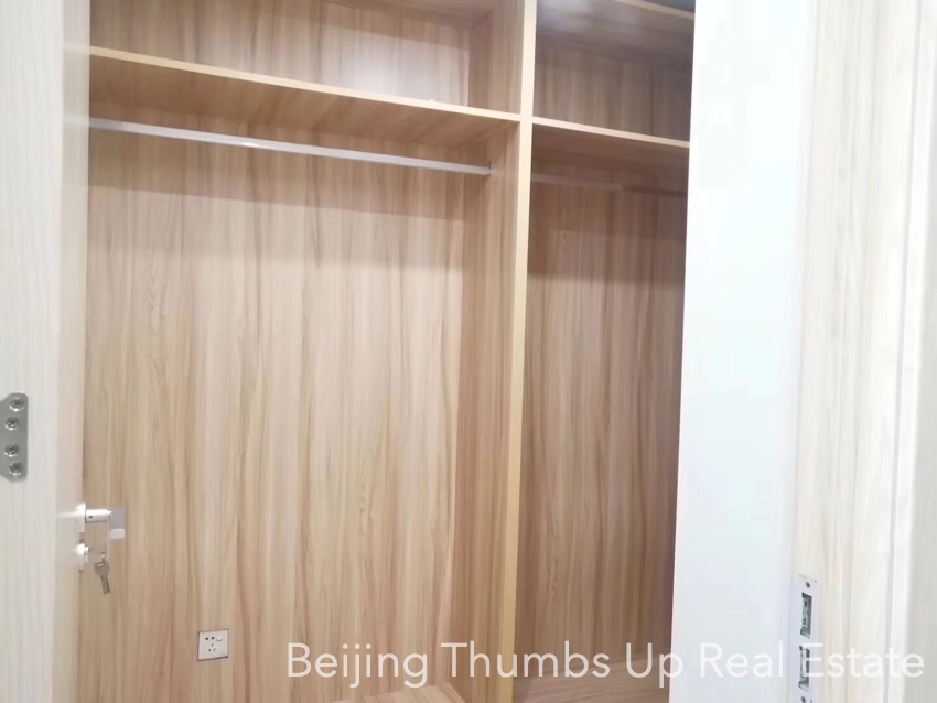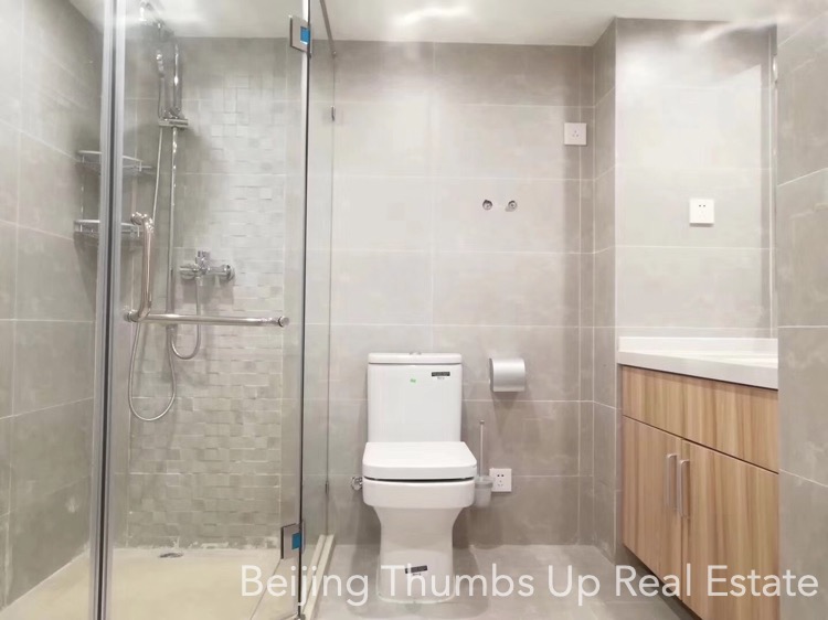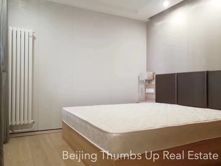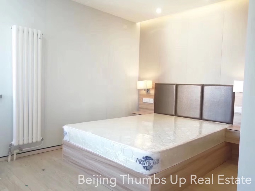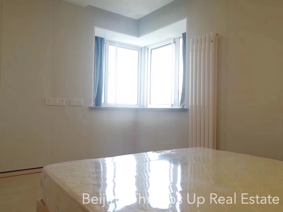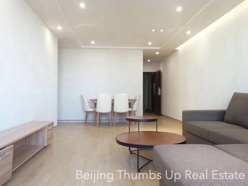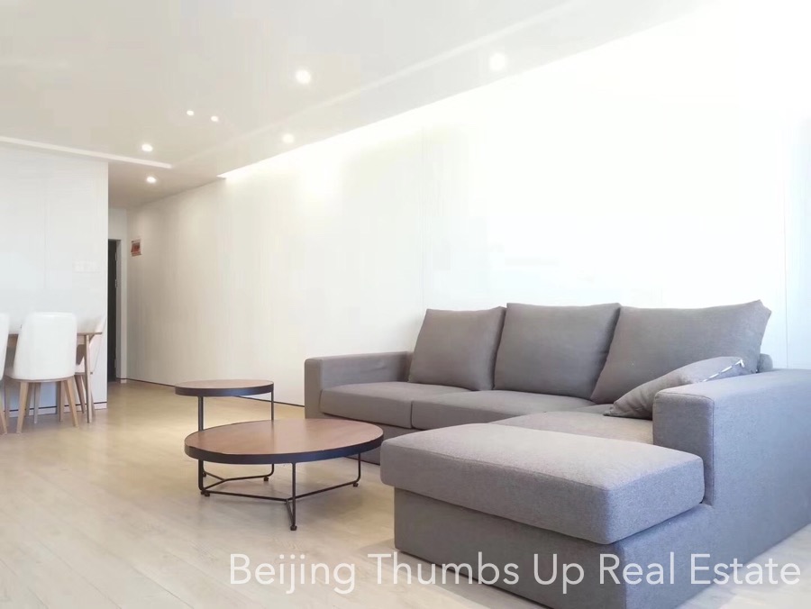 This is a high floor apartment located in Lishui Garden at the south gate of Chaoyang Park, Beijing. It was transformed from 3 bedrooms into 2 bedrooms, with an area of 130 square meters. It has a great lake view of Chaoyang Park. It is fully furnished with modern simple style furniture.