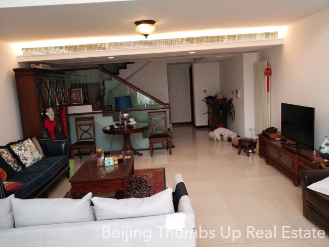 This is a townhouse villa located in La Grande Ville in Beijing Shunyi for rent. It has 4 bedrooms with an area of 277 square meters. It is 4 floors high, fully furnished. It is north and south orientated. The landlord of this villa is a nice person, very considerate.