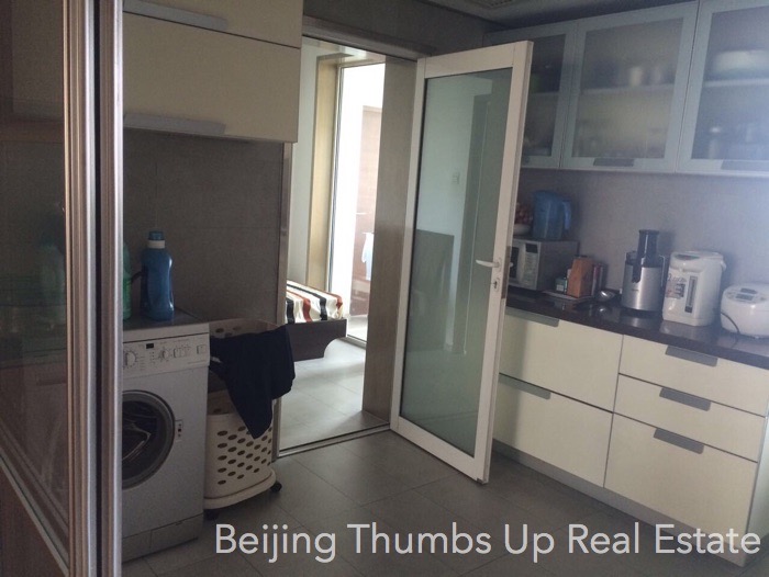 This is a nice apartment located in Upper East Side in Lido area, Beijing for rent. It has 4 bedrooms with an area of 207 square meters. It is on the low floor, very easy to see the green trees outside the windows. It has a nice layout, very comfortable. The living room is spacious with a large window, the view is wider and the daylight is better. The pendant lamp of the living room is very attractive. This apartment uses central air condition to adjust the indoor temperature.