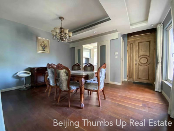 This is a single family villa located in La Grande Ville in Shunyi Central Villa District of Beijing for rent. It has 4 bedrooms with a construction area of 401 square meters. It is fully furnished with all necessary furniture. The kitchen is spacious and well equipped. Every room of this villa is well maintained. The landlord hopes that the apartment can be rented out as it is, and large pieces of furniture can't be moved away.