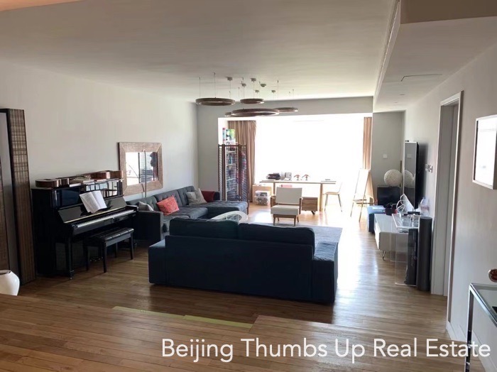 This is a nice apartment located in Park Apartments in Chaoyang Park area, Beijing for rent. It has 3 bedrooms and 1 study room, with an area of 245 square meters. It is fully furnished with high quality furniture. The living room and dinning room are spacious, very comfortable. The kitchen is well equipped. Are you interested in this apartment?