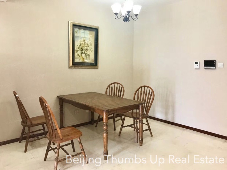 This apartment has 2 bedrooms and 2 bathrooms, located in the Mixion Residence in Lufthansa area, Beijing for rent. It covers an area of 160 square meter. The advantages of this apartment are as follows: 1. It has a large enclosed balcony next to the living room and guest bedroom, there are few apartments with such a large balcony in the apartments in the center of Beijing. 2. The kitchen is very bright and well equipped, including an oven, a dishwasher, a gas stove, a range hood and a refrigerator. 3. The bathtub and shower in the master bathroom are separated from each other, very convenient.