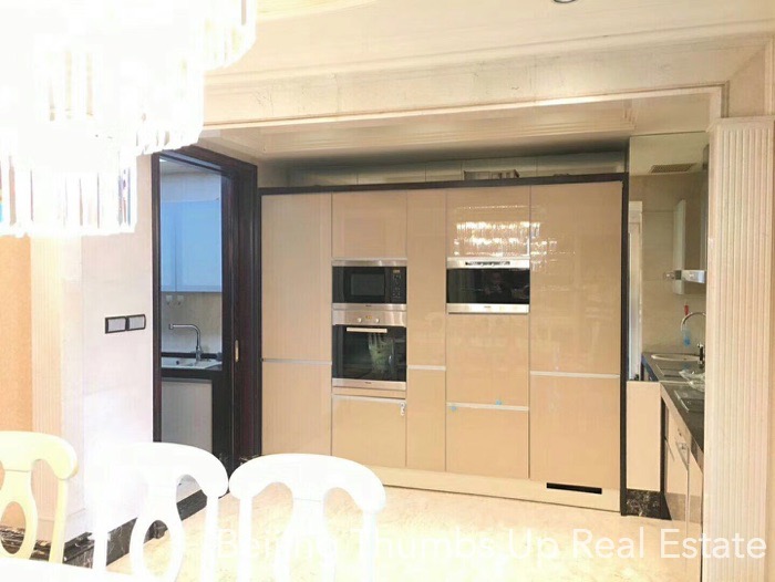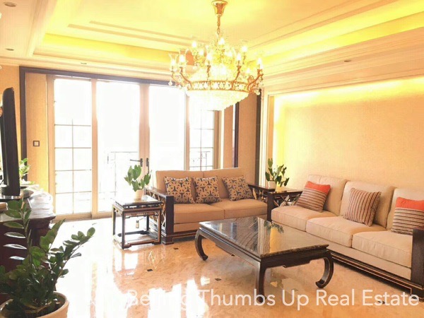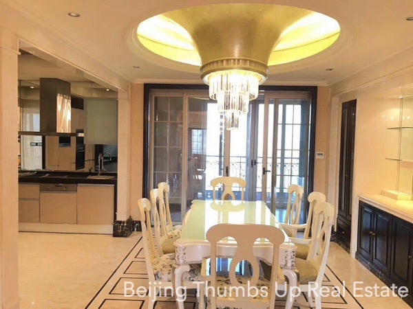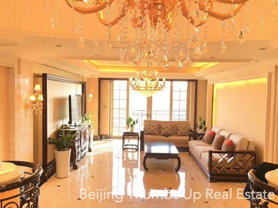 Are you going to rent a 3 bedrooms duplex apartment of luxury style in downtown of Beijing? This apartment is suitable. This is a duplex apartment of luxury style located in Star River in Qingnianlu area, Beijing for rent. It has 3 bedrooms, 1 study room and 1 nanny room, covers an area of 293 square meters. It is luxuriously decorated with luxury hung ceilings, polished marble floors with patterns and gorgeous walls of different styles. It is fully furnished with high grade furniture, luxury lamps and modern household appliances. The kitchen is well equipped with a nice layout. The design of the kitchen is creative. There are outdoor balconies outside the living room and dining room, it's fantastic. This apartment has floor heating in winter. Are you interested in this apartment?