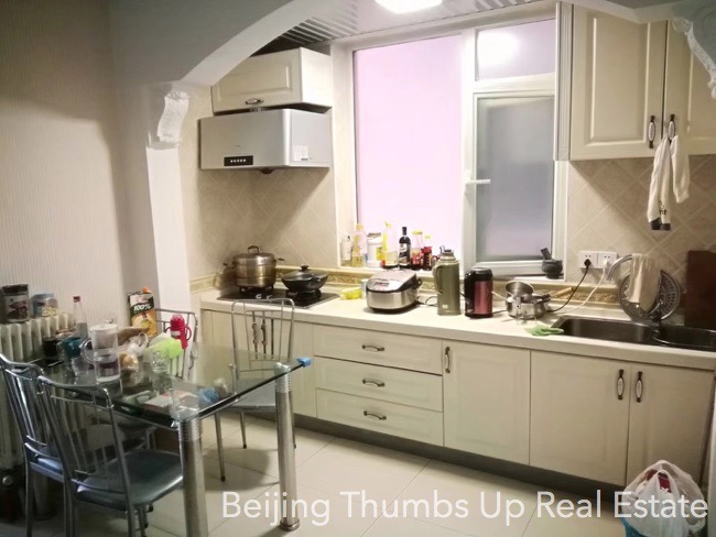 This is a modern simple style apartment located in Lishui Garden in Chaoyang Park area, Beijing for rent. It has 2 bedrooms with an area of 112 square meters. It is fully furnished with all necessary furniture. This apartment has air condition in summer and heater in winter.