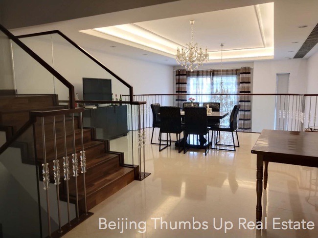 This is a high cost performance townhouse villa located in La Grande Ville in Beijing Shunyi for rent. It has 4 bedrooms with an area of 272 square meters. It is modern refined decorated with a high quality decoration standard, and fully furnished with high quality furniture. The lobby of this villa is spatial with a very high hung ceiling, and the pendant lamp is very grand, very spectacular. This villa is well maintained, every room is in good condition.