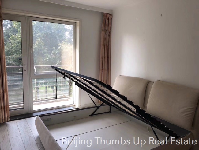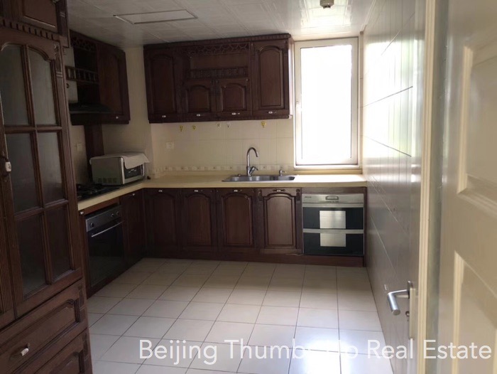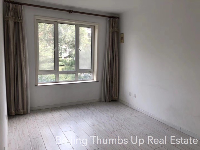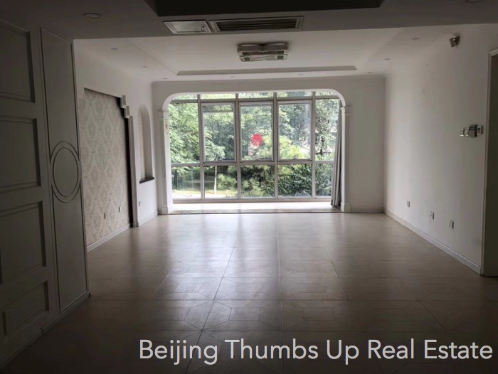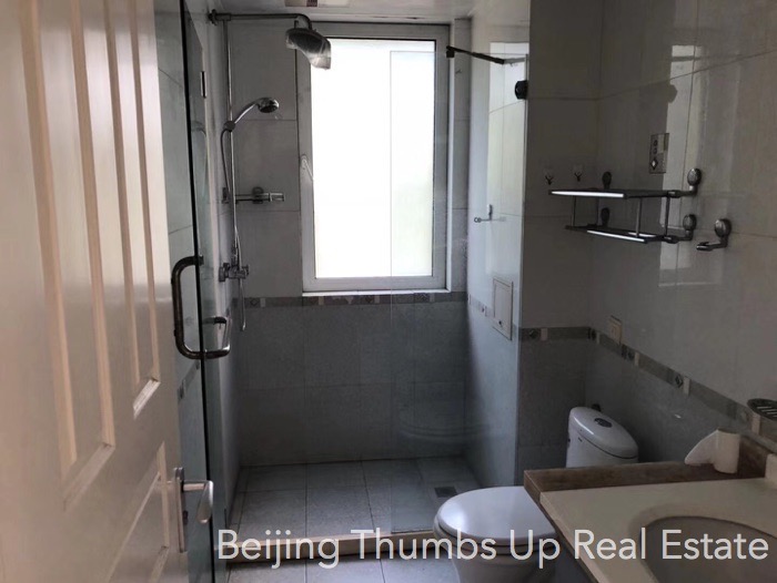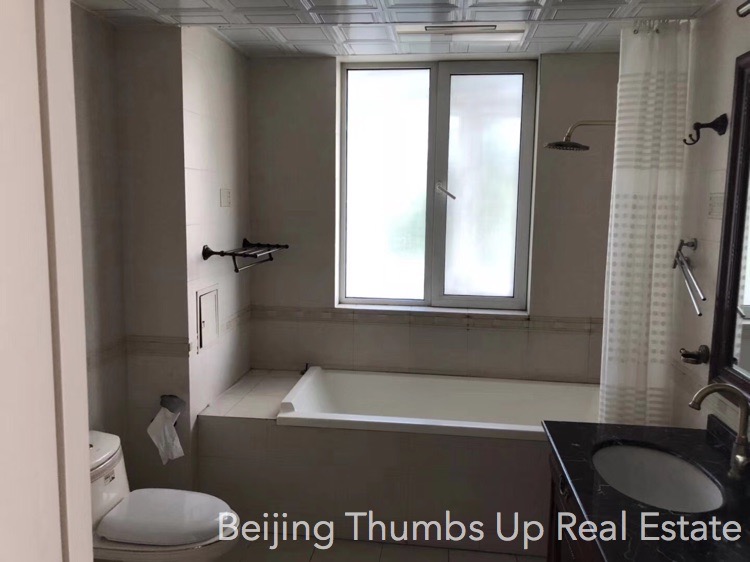 This is a low floor apartment located in Upper East Side in Lido area, Beijing for rent. It has 3 bedrooms with an area of 197 square meters. It is south facing and unfurnished. It has a king building layout, the living room is between the 2 bedrooms. The living room and kitchen are very spacious, very comfortable.