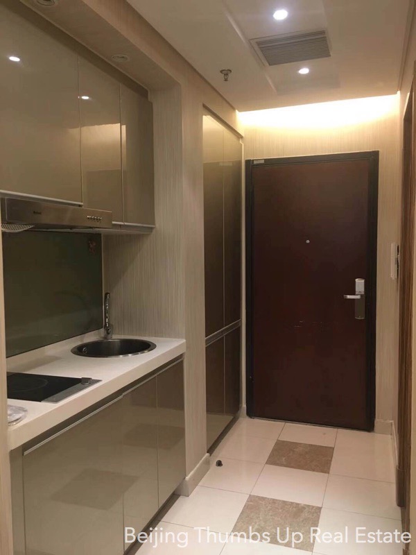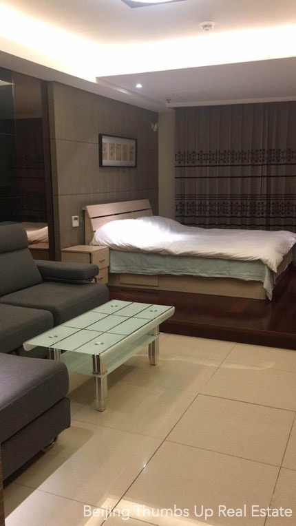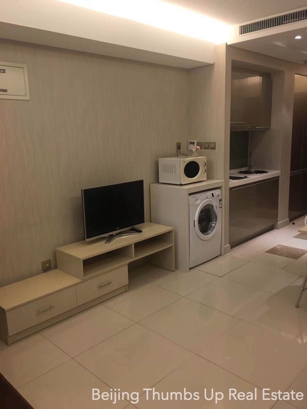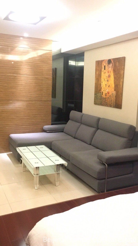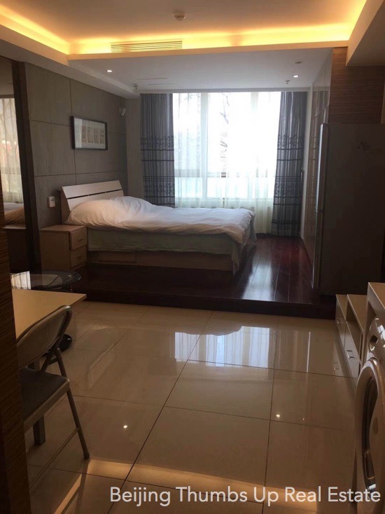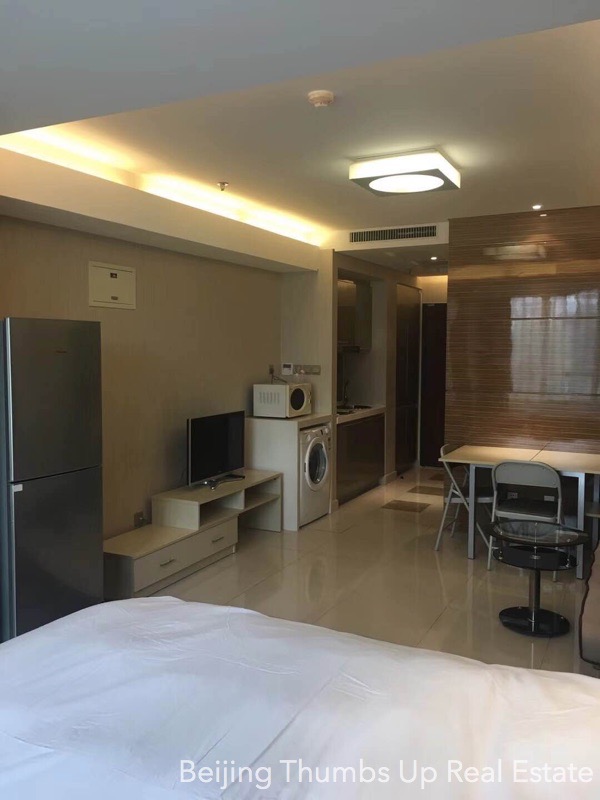 This is a nice studio apartment located in Shoukai Bojun in Beijing Sanlitun for rent. It covers an area of 68 square meters. It is west facing, fully furnished. It is in good condition.
