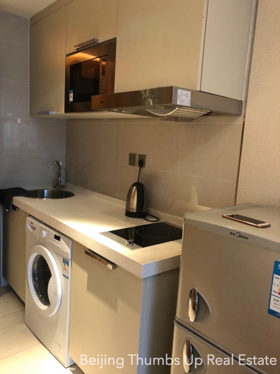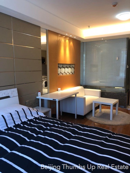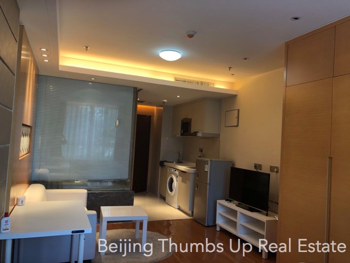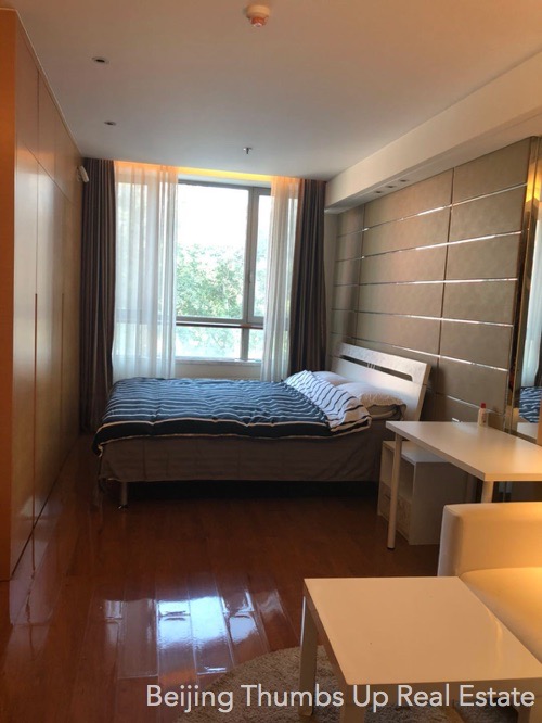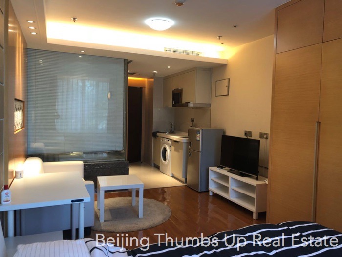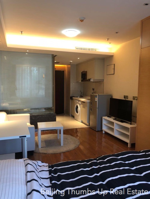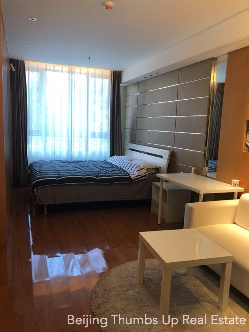This studio apartment is highly recommended, located in Shoukai Bojun in Beijing Sanlitun. It covers an area of 55 square meters. It is east orientated, good sunlight during the day. It is well furnished with all necessary furniture. It is well maintained, the ceilings, walls, floors, table-boards, lamps, furniture are all in good condition.